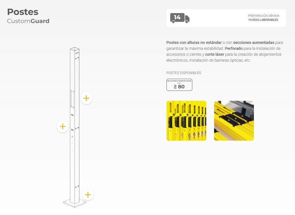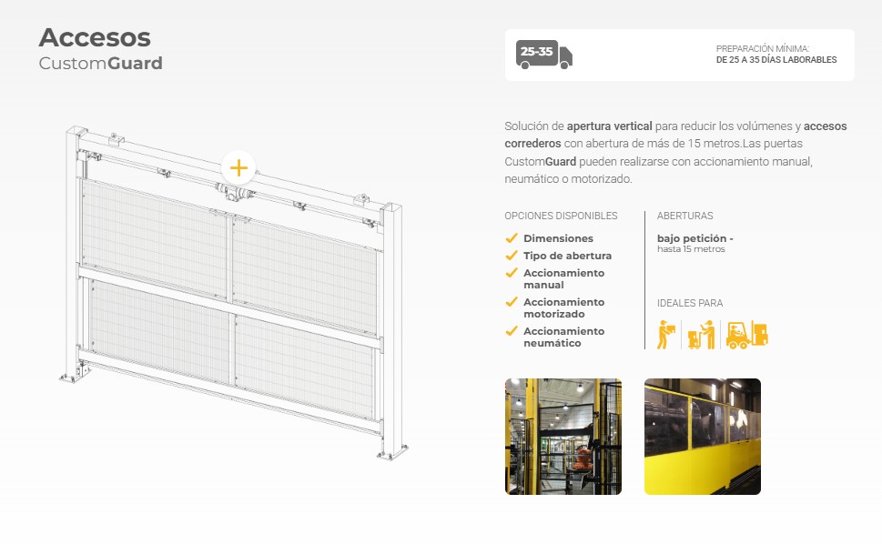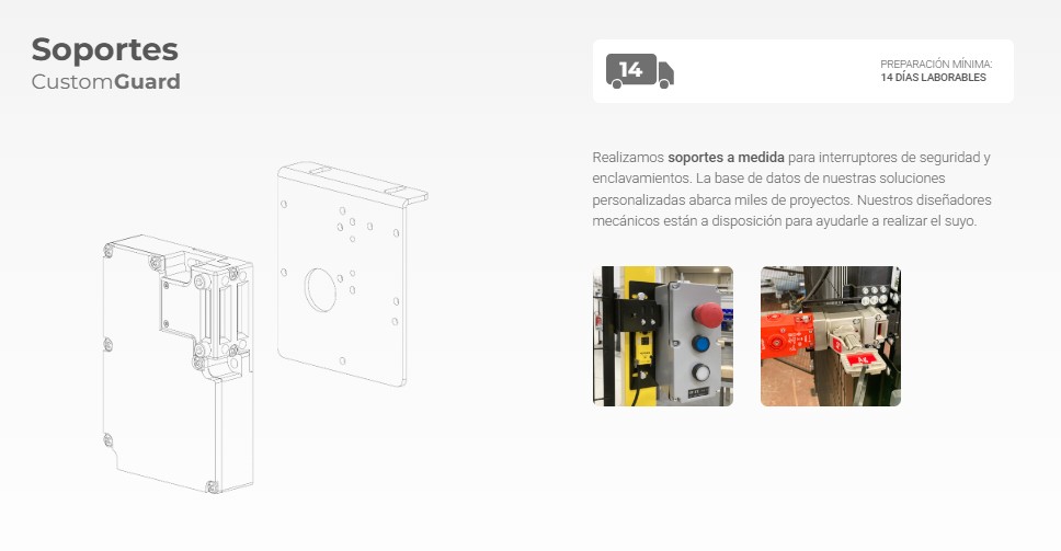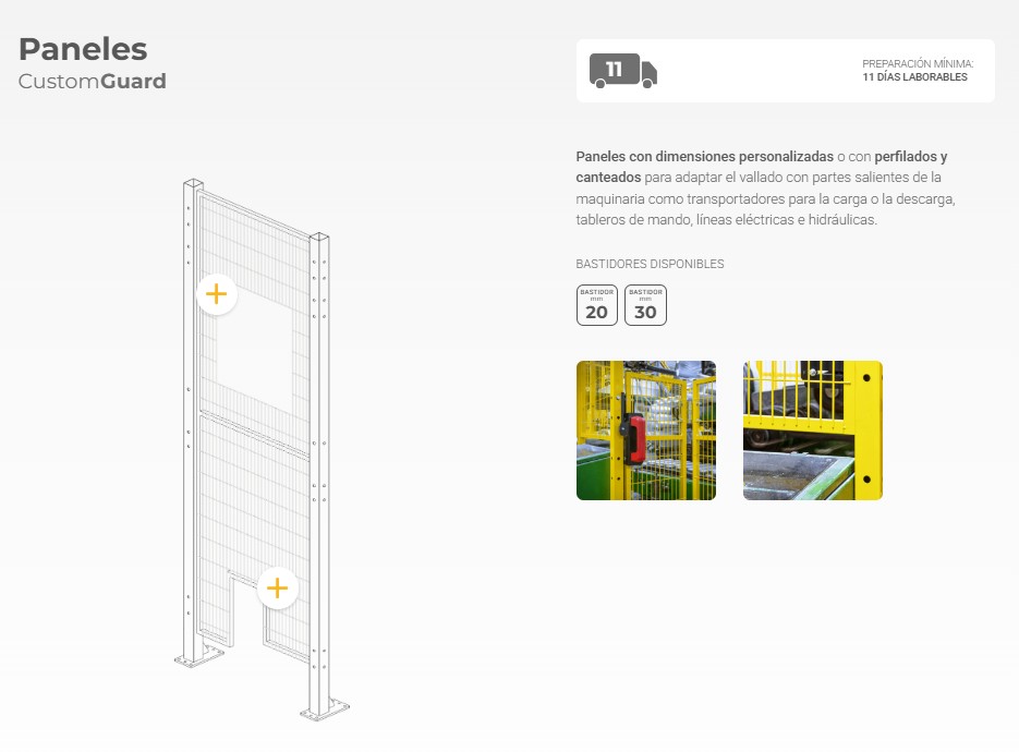 CustomGuard ofrece soluciones con distintos grados de personalización: color, acabados, formas, dimensiones y productos a medida como soportes para accesorios e interruptores de seguridad y accesos automatizados. También adaptaciones, cortes y canteados. Sistemas de protección diseñados completamente a medida para adaptarse a máquinas o procesos con geometrías especiales. Ideal para líneas automatizadas o entornos únicos, garantiza seguridad sin comprometer el acceso ni la funcionalidad operativa.