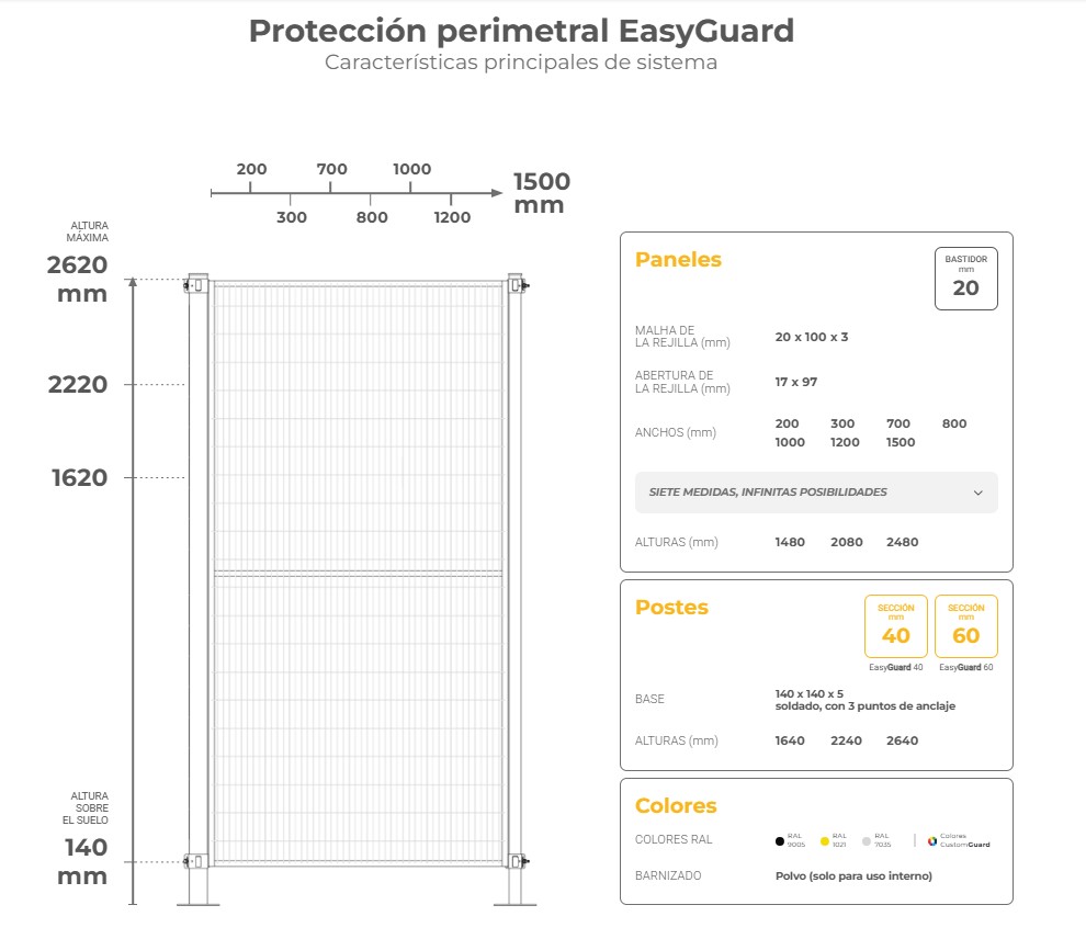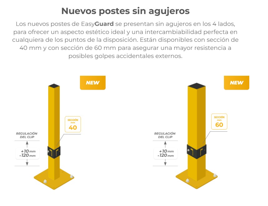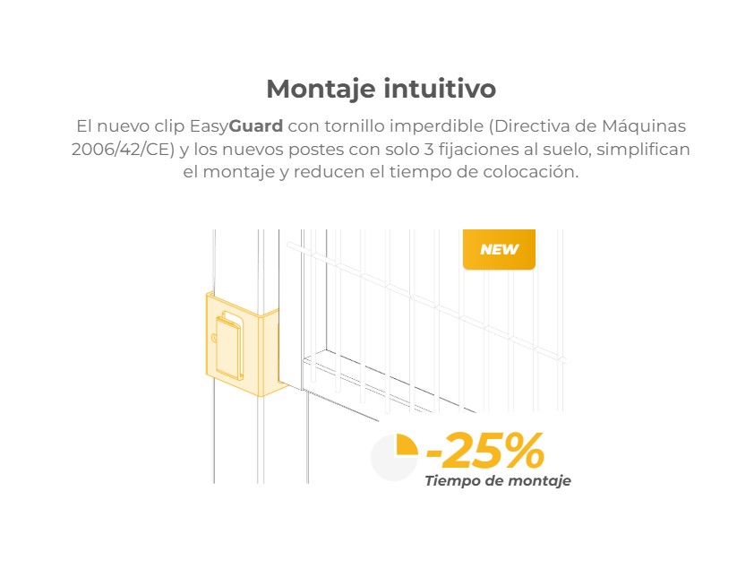 PRÁCTICO: La protección perimetral EasyGuard presenta nuevas bases soldadas con 3 puntos de anclaje y clip con diseño renovado, para reducir los tiempos de colocación en un 25 %.